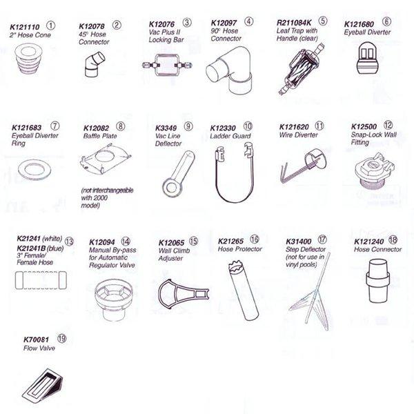List And Illustrations Of Hose Accessories And Parts For The Kreepy Krauly In The Swim